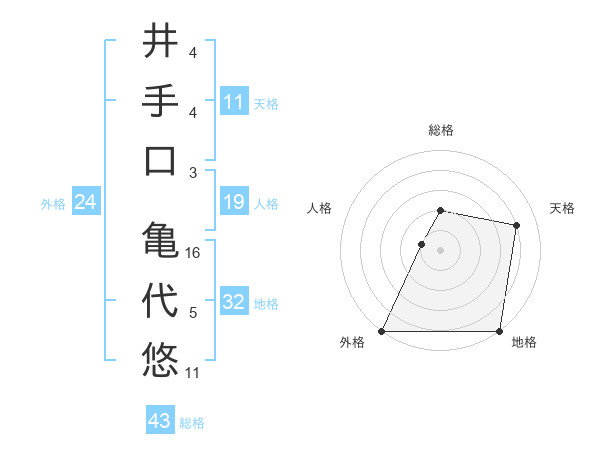 井手口 亀代悠さんを姓名の画数から五運を鑑定