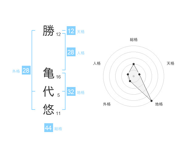 勝 亀代悠さんを姓名の画数から五運を鑑定