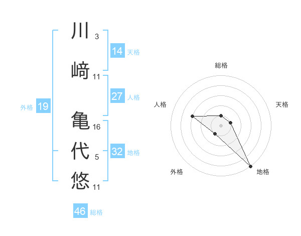 川﨑 亀代悠さんの総格は46画の1点!