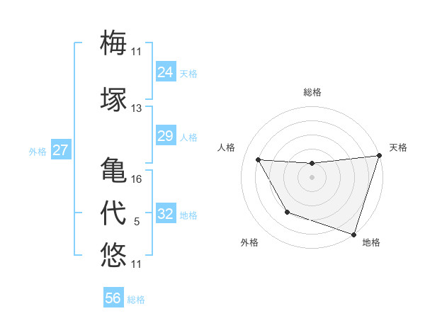 梅塚 亀代悠さんの天格は24画の5点!