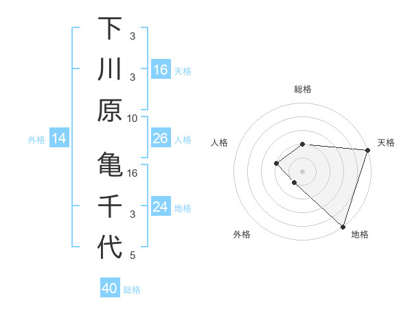 下川原 亀千代さんを姓名の画数から五運を鑑定