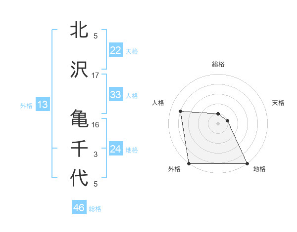 北沢 亀千代さんを姓名の画数から五運を鑑定