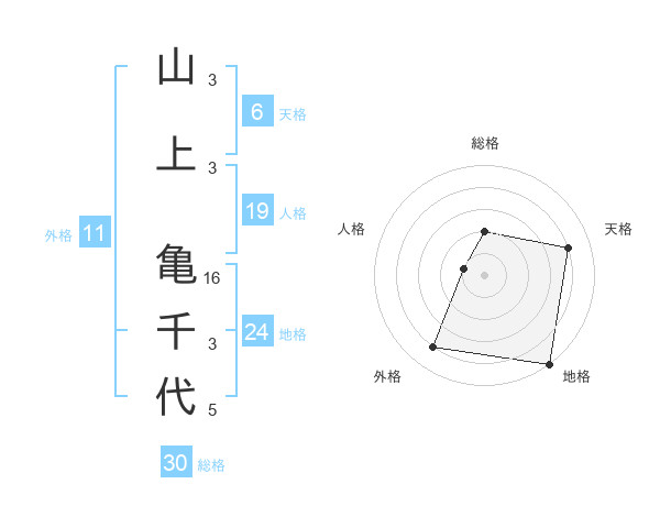 山上 亀千代さんを姓名の画数から五運を鑑定