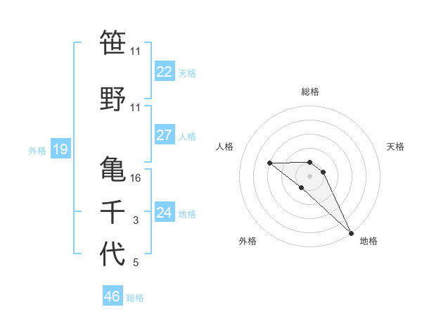 笹野 亀千代さんの総格は46画の1点!