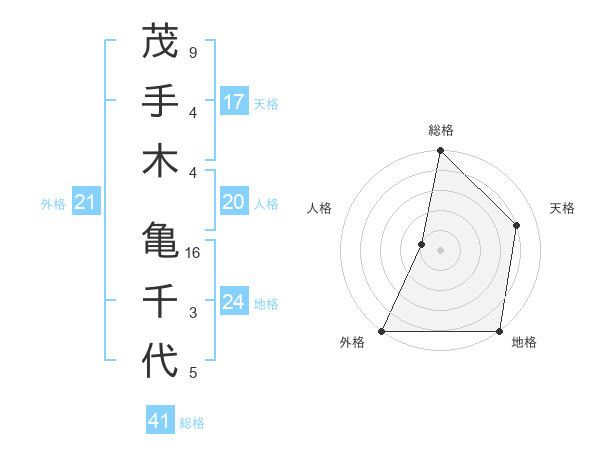 茂手木 亀千代さんを姓名の画数から五運を鑑定