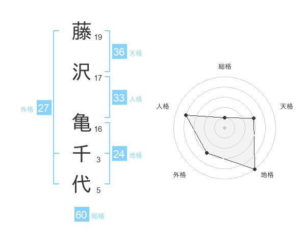 藤沢 亀千代さんを姓名の画数から五運を鑑定