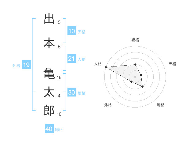 出本 亀太郎さんの外格は19画の1点!