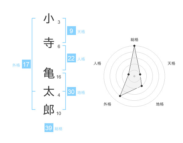 小寺 亀太郎さんの総格は39画の5点!