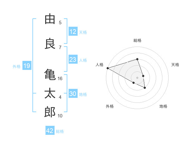 由良 亀太郎さんを姓名の画数から五運を鑑定