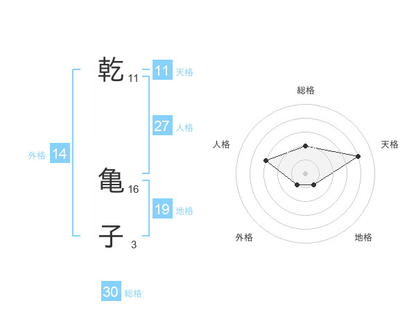 乾 亀子さんの総格は30画の2点!