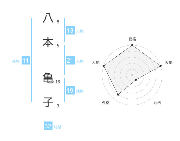 八本 亀子さんの総格は32画の5点!
