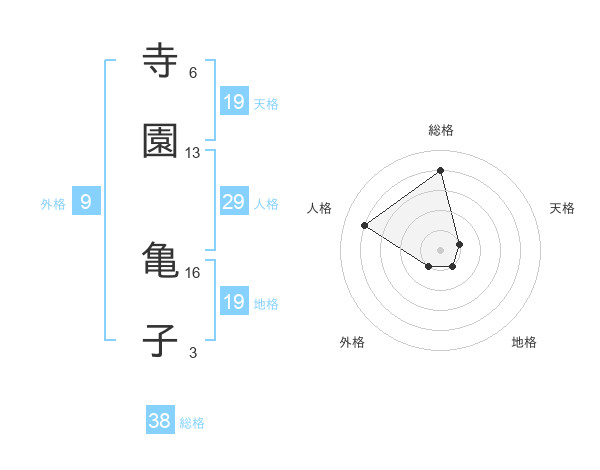 寺園 亀子さんの総格は38画の4点!