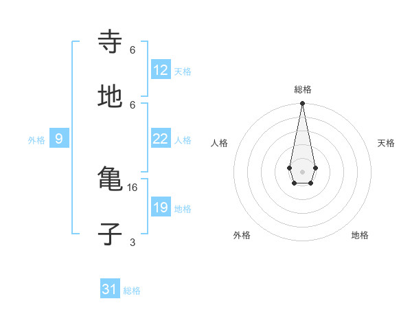 寺地 亀子さんを姓名の画数から五運を鑑定