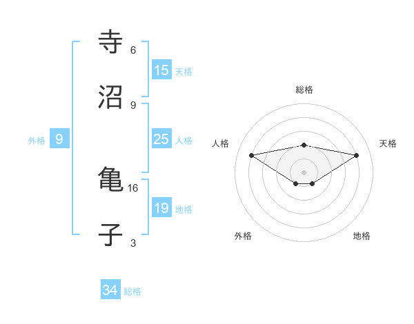 寺沼 亀子さんを姓名の画数から五運を鑑定