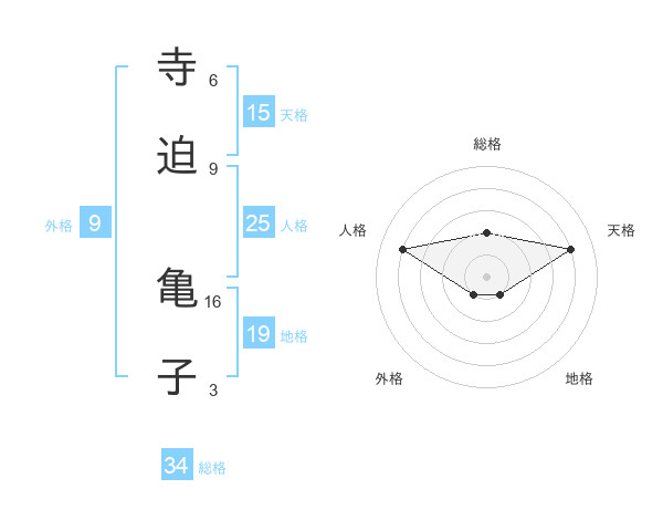 寺迫 亀子さんの総格は34画の2点!