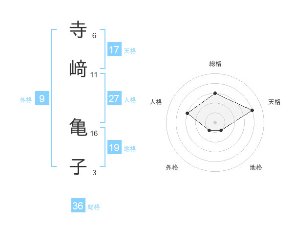 寺﨑 亀子さんの天格は17画の4点!