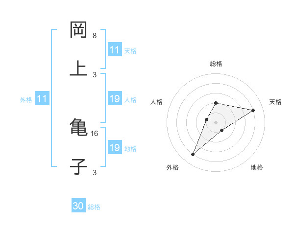 岡上 亀子さんを姓名の画数から五運を鑑定