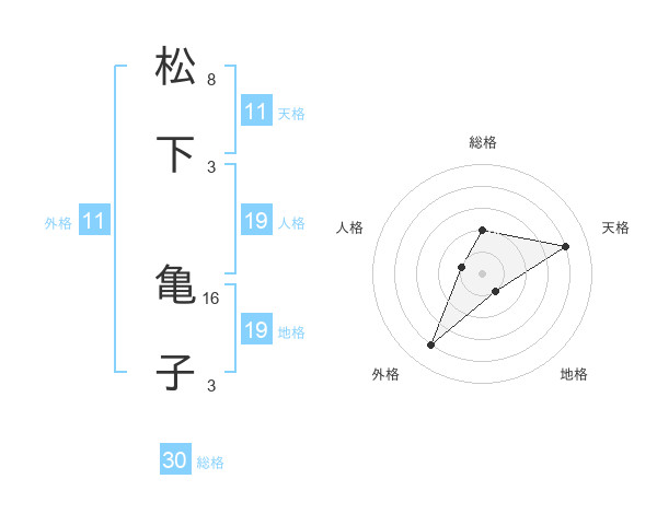 松下 亀子さんの総格は30画の2点!