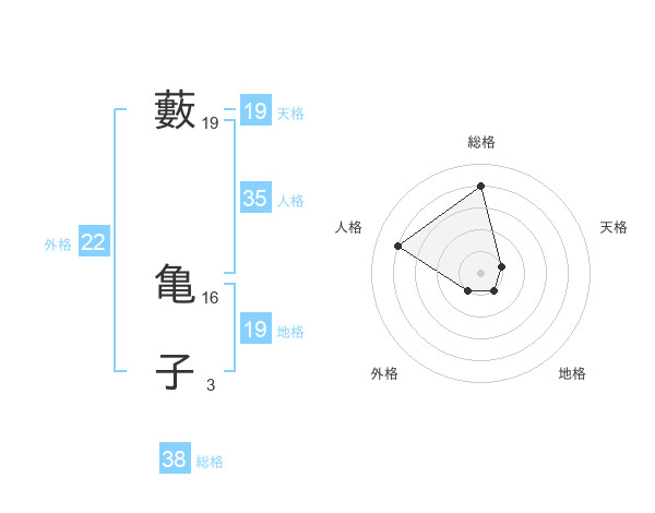 藪 亀子さんの総格は38画の4点!