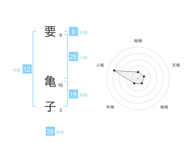 要 亀子さんの外格は12画の1点!