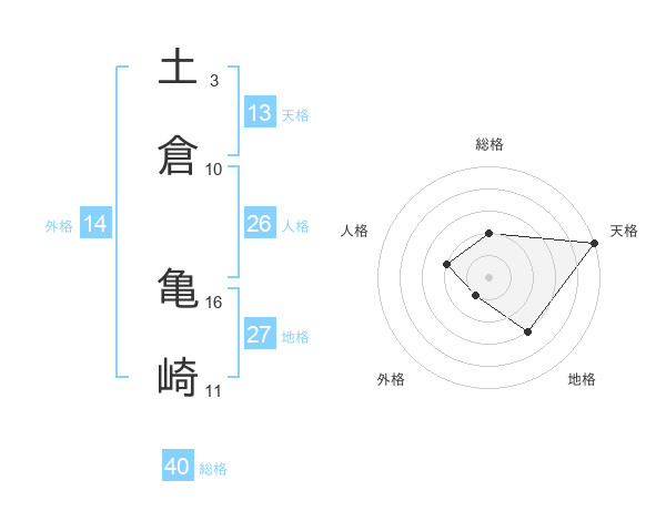 土倉 亀崎さんの天格は13画の5点!