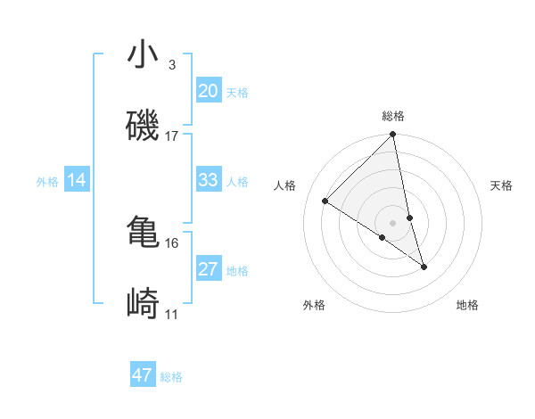 小磯 亀崎さんの総格は47画の5点!