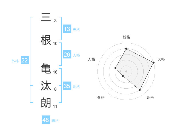 三根 亀汰朗さんの総格は48画の4点!
