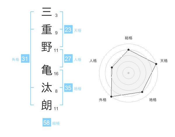 三重野 亀汰朗さんの外格は31画の5点!