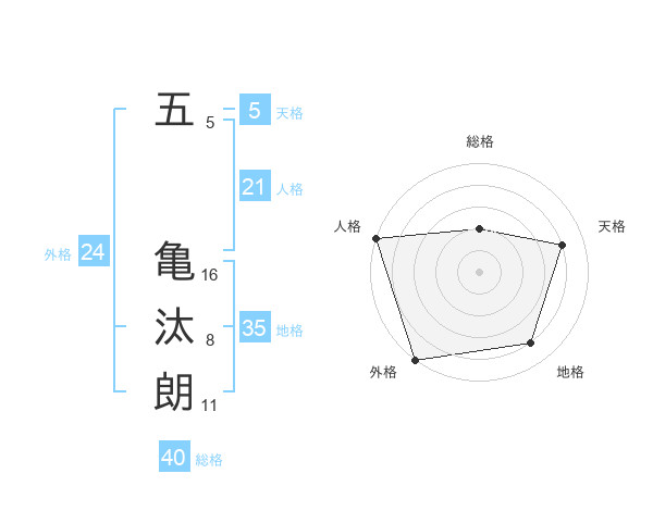 五 亀汰朗さんを姓名の画数から五運を鑑定