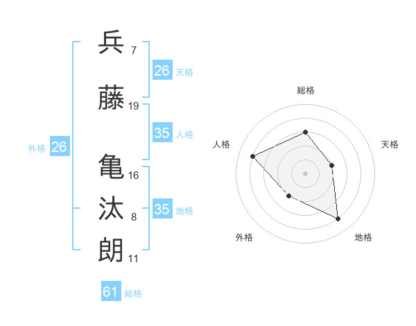 兵藤 亀汰朗さんを姓名の画数から五運を鑑定