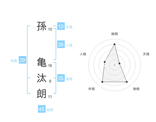 孫 亀汰朗さんを姓名の画数から五運を鑑定
