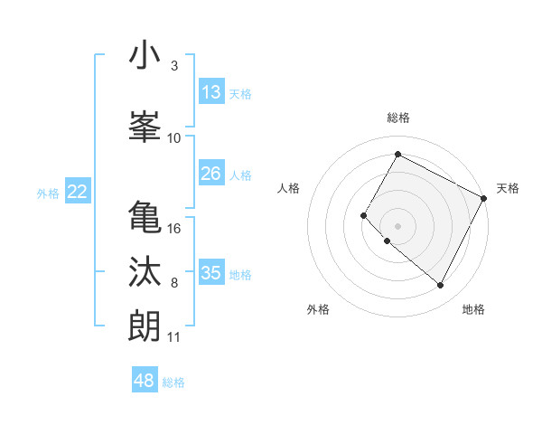 小峯 亀汰朗さんを姓名の画数から五運を鑑定