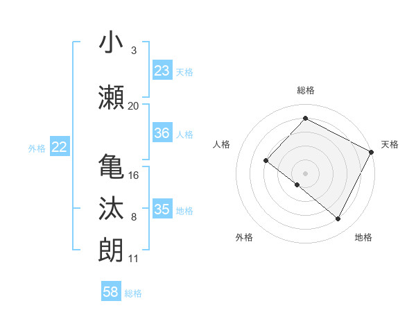 小瀬 亀汰朗さんを姓名の画数から五運を鑑定