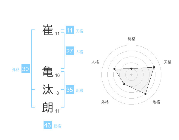 崔 亀汰朗さんの天格は11画の4点!