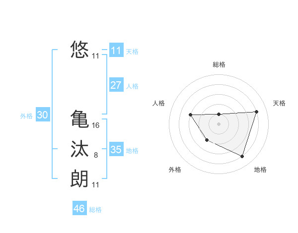 悠 亀汰朗さんの天格は11画の4点!