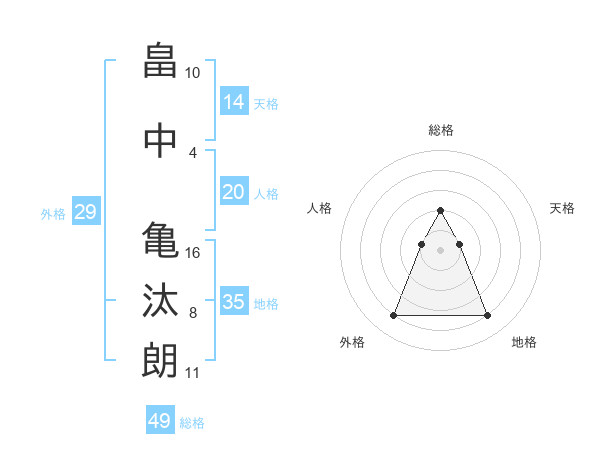 畠中 亀汰朗さんを姓名の画数から五運を鑑定