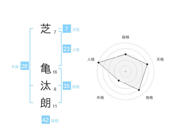芝 亀汰朗さんを姓名の画数から五運を鑑定