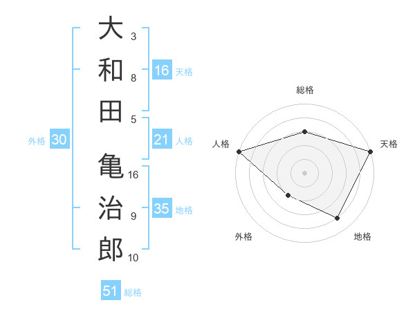 大和田 亀治郎さんの総格は51画の3点!