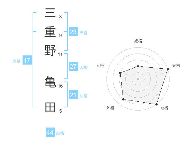 三重野 亀田さんの総格は44画の2点!