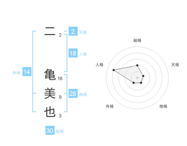 二 亀美也さんの総格は30画の2点!