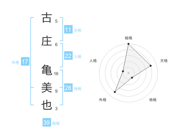 古庄 亀美也さんの総格は39画の5点!