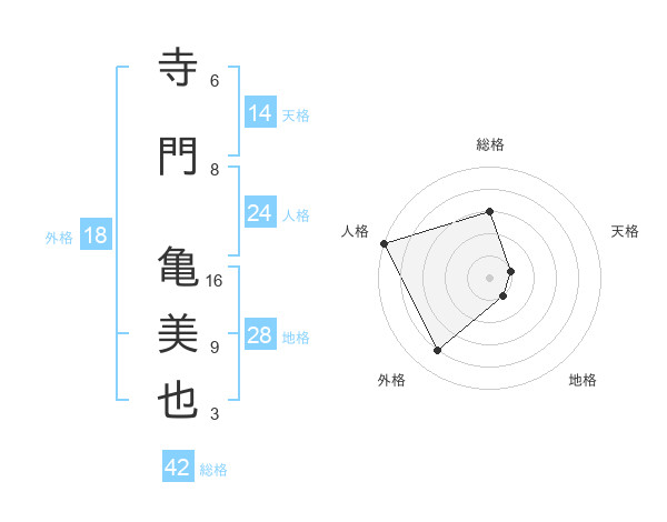 寺門 亀美也さんの総格は42画の3点!