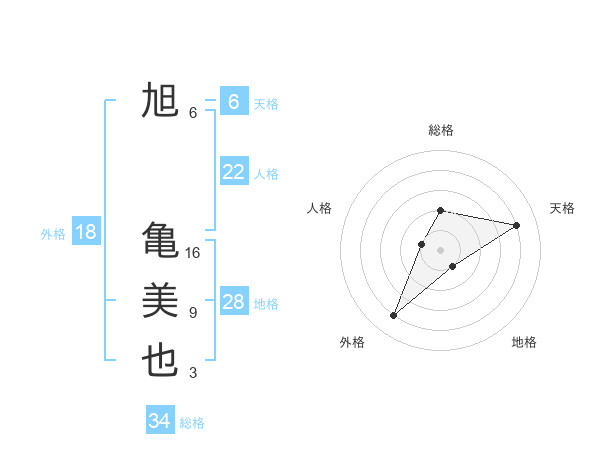 旭 亀美也さんの天格は6画の4点!