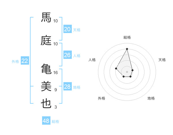 馬庭 亀美也さんを姓名の画数から五運を鑑定