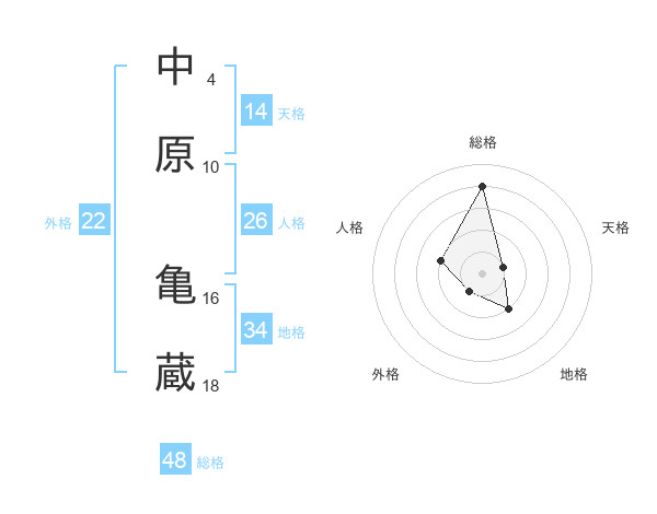 中原 亀蔵さんの総格は48画の4点!