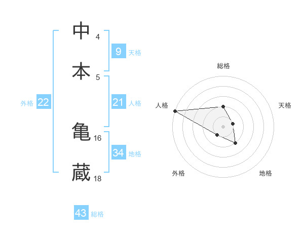 中本 亀蔵さんを姓名の画数から五運を鑑定