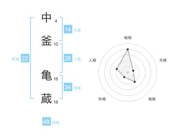 中釜 亀蔵さんの総格は48画の4点!