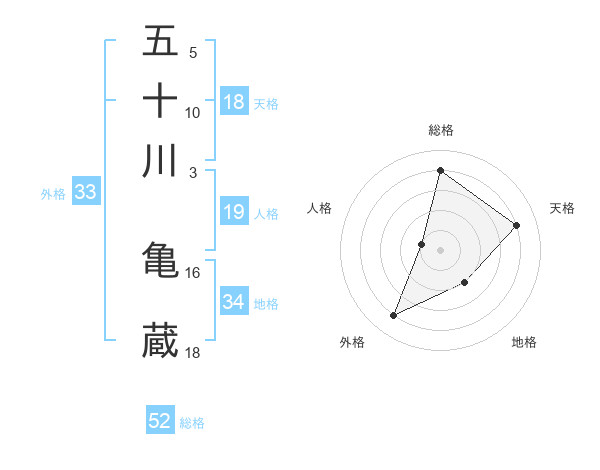 五十川 亀蔵さんを姓名の画数から五運を鑑定