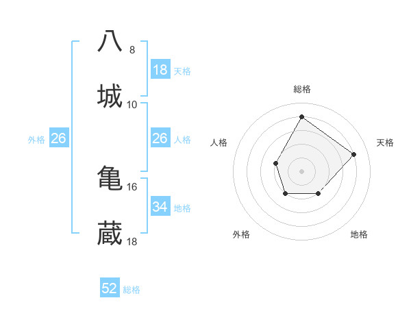 八城 亀蔵さんを姓名の画数から五運を鑑定