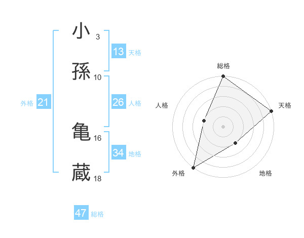 小孫 亀蔵さんの総格は47画の5点!